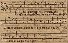 ![]() The Sterbelied (hymn for the dying) in a Lutheran hymnal, 1614 | |