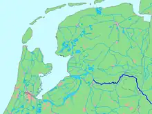 The Vechte (German pronunciation: [ˈfɛçtə]) (in German and in Low Saxon (Dutch Low Saxon pronunciation: [v̯ɛxtə])[2][3] or Vecht (in Dutch) (Dutch pronunciation: [vɛxt]), often called Overijsselse Vecht (Dutch pronunciation: [oːvərˈɛi̯səlsə ˈvɛxt]) in the Netherlands to avoid confusion with its Utrecht counterpart, is a river in Germany and the Netherlands. Its total length is 182 km (113 mi), of which 107 km (66 mi) are on German soil.