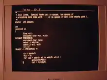 - ↑ Tim Thompson (28 June 1987). "A mini-vi for the ST". Newsgroup: comp.sys.atari.st. Usenet: 129@glimmer.UUCP. Retrieved 29 December 2010.