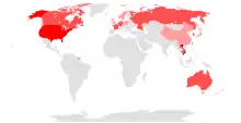 ![]() Areas within Vietnam with majority Vietnamese speakers, mirroring the ethnic landscape of Vietnam with ethnic Vietnamese dominating around the lowland pale of the country.[4] | |