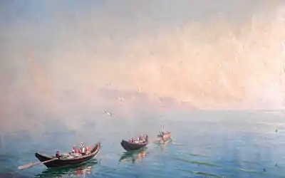 Looking at Tomilovsky’s creative life, one can easily trace the main milestones of its development. The beginning of his career as an artist was clearly marked by the landscape painting. According to the opinion of an Irkutsk-based artist Alexandra Madisson, Tomilovsky ‘felt the nature’ and had an ability to see the significant in the unnoticeable at first sight. And that is why he excelled in so-called ‘intimate landscapes’, full of warm, lyrical mood. The further Tomilovsky developed as an artist, the more optimistic and sunnier his paintings became. One of the main topics of his art was Lake Baikal which is situated in Siberia, near the city of Irkutsk where the artist spent the most of his life. Vladimir Tomilovsky knew Baikal very well: for years he had been walking along its shores, sailed it a number of times and always paid great attention to the water of the lake in his painting that capture hundreds of its shades. Despite a human being is rarely depicted on Tomilovsky’s paintings, one could always feel the human presence. Tomilovsky wrote his paintings for people, in order to bring us closer the treasures of nature. Probably that is why the painting called ‘The Pearl of Lake Baikal’ is exhibited for many years in the Museum of the Irkutsk Limnological Institute situated on the shore of the lake.
