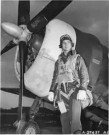 ![]() Major Walter C Beckham with his P-47D "Little Demon II" | |