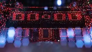 Wanda gets a new superhero costume at the end of the series when she takes on the mantle of the Scarlet Witch.[138] This costume was designed by Andy Park of Marvel Studios' visual development team, and Rubeo worked with Ironhead Studios to create it.[139] She explained that the creatives wanted the costume to be more mature and "weathered" than Wanda's previous costumes, acknowledging what the character has gone through in the MCU so far. They also wanted it to be less revealing and not include a corset or tights,[134] as Olsen had previously expressed concern over her "cleavage corset" costume from the films and the fact that she was the only female superhero in the MCU with such a revealing outfit;[140] Olsen consulted on the design for the new costume. Shakman said the biggest element for discussion was the crown, which they initially thought should be smaller than it is in the comics. They ultimately decided to "go big or go home" with the crown,[105] which is depicted as forming from magical energy before Wanda uses her creation magic to turn it into a solid object.[138] Rubeo worked with shoemaking company Jitterbug Boy to create the boots for Wanda's costume.[141]