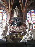 The cathedral comprises a nave with aisles, transepts with aisles, a choir with double aisles, and an apse with ambulatory and radiating chapels. The main altar, located in the apse, was founded about 1650 by Bishop Piotr Gembicki and created by Giovanni Battista Gisleni. The altar painting of Crucified Christ by Marcin Blechowski is from the 17th century.[2] Over the main altar stands a tall canopy of black marble supported by four pillars, designed by Giovanni Battista Trevano and Matteo Castelli between 1626 and 1629. Underneath the canopy is placed a silver coffin of national patron Stanislaus of Szczepanów (also Stanisław Szczepanowski) created between 1669 and 1671 after the previous one (donated in 1512 by King Sigismund I the Old) was stolen by the Swedes in 1655.[3]