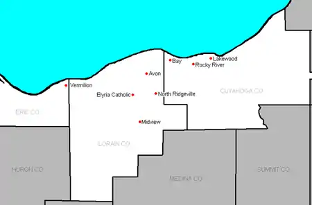 • In October 2013, North Ridgeville replaced Brecksville-Broadview Heights in the 2015–2016 school year.