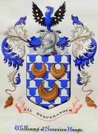 The Williams Baronetcy, of Elham in the County of Kent, was created in the Baronetage of England on 12 November 1674 for Thomas Williams, Physician to Charles I and James II.[2][3] He was later Member of Parliament for Weobley 1675-8. His son, the second Baronet was High Sheriff of Kent in 1668 and represented Herefordshire 1701-5.[4] His nephew succeeded as the third Baronet but the Elham estate passed to his daughter and her husband Thomas Symonds. The fourth and fifth Baronets were sons of the third Baronet. On the latter's death in 1804 the title became either extinct or dormant.