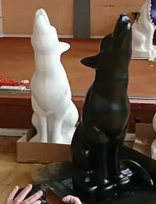 In May 2016, Outside Centre commissioned Marie Sewell to design the prototype wolf sculpture, which formed the basis of each exhibit.[9] In March 2017, the first blank wolf sculpture was delivered to Moreton School[10][11] situated in the Bushbury Hill area of the city, with the school pupils tasked with creating a design for the Mayoral Wolf; a wolf sculpture designed with the Mayor of Wolverhampton in mind.[12] A further 29 blank sculptures were delivered to a studio, where local and international artists decorated each wolf sculpture in a unique manner.