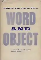 Word and Object is a 1960 work by the philosopher Willard Van Orman Quine, in which the author expands upon the line of thought of his earlier writings in From a Logical Point of View (1953), and reformulates some of his earlier arguments, such as his attack in "Two Dogmas of Empiricism" on the analytic–synthetic distinction.[1] The thought experiment of radical translation and the accompanying notion of indeterminacy of translation are original to Word and Object, which is Quine's most famous book.[2]