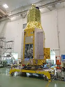 The X-Ray Imaging and Spectroscopy Mission (XRISM, pronounced "crism"), formerly the X-ray Astronomy Recovery Mission (XARM), is an X-ray space telescope mission of the Japan Aerospace Exploration Agency (JAXA) in partnership with NASA to provide breakthroughs in the study of structure formation of the universe, outflows from galaxy nuclei, and dark matter.[3][4] As the only international X-ray observatory project of its period, XRISM will function as a next generation space telescope in the X-ray astronomy field, similar to how the James Webb Space Telescope, Fermi Space Telescope, and the Atacama Large Millimeter Array (ALMA) Observatory are placed in their respective fields.[2][5]