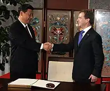 - ↑ "Presenting the Order of St Andrew the Apostle to President of China Xi Jinping". The Kremlin. 4 July 2017. Archived from the original on 11 August 2019. Retrieved 7 September 2019.