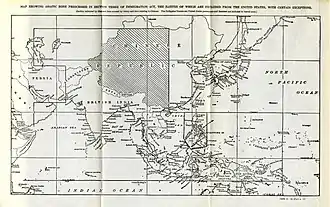 In the late 19th century, with the Treaty of Saint Petersburg, the Qing dynasty (1644–1912) China recovered the eastern portion of the Ili River basin (Zhetysu), which Russia had occupied for a decade, since the Dungan Revolt.[19][20][21] In that time, the mass communications media of the West misrepresented China as an ascendant military power, and applied Yellow Peril ideology to evoke racist fears that China would conquer Western colonies, such as Australia.[22]