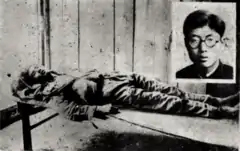 ![]() The dead body of Yu Zisan at the Hangzhou Garrison Headquarters | |