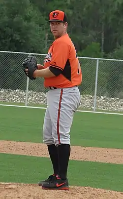 ![]() Clark pitching for Baltimore Orioles extended spring training in 2014 | |