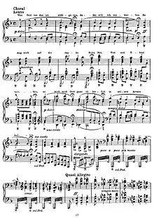 In the nineteenth century, Franz Liszt used the hymn in several compositions. In 1862, following the death of his daughter Blandine, he wrote his Variations on a theme of J. S. Bach, S180 for piano based on Weinen, Klagen, Sorgen, Zagen, BWV 12, with its closing chorale on "Was Gott tut, das ist wohlgetan" on the penultimate page above which Liszt wrote the words of the chorale. Walker (1997) describes the Variations as "a wonderful vehicle for his grief" and the Lutheran chorale as "an unmistakable reference to the personal loss that he himself had suffered, and his acceptance of it."[35] The hymn also appeared as the sixth piece (for chorus and organ) in Liszt's Deutsche Kirchenlieder, S.669a (1878–1879) and the first piece in his Zwölf alte deutsche geistliche Weisen, S.50 (1878–1879) for piano. It was also set in the first of the chorale preludes, Op.93 by the French organist and composer Alexandre Guilmant.[27][35]