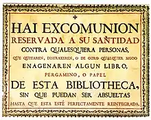 The ambassador saw a sign similar to this threat of excommunication against book thieves.