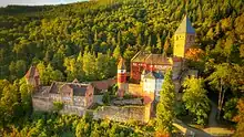 Zwingenberg Castle (German: Burg Zwingenberg), also called Zwingenberg or Schloss Zwingenberg, stands on the right bank of the River Neckar where it cuts through the Odenwald hills in central Germany. The castle is located in the municipality of Zwingenberg in the state of Baden-Württemberg.