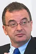 Zapatero announced on 2 April 2011 that he would not run for a third term in the next general election,[69][70] but his initial plans to hold a party primary to elect a successor were scrapped following the PSOE's heavy defeats in the local and regional elections of 22 May 2011.[71] Defence minister and likely candidate Carme Chacón withdrew from the race in favour of deputy prime minister Alfredo Pérez Rubalcaba,[72][73] who became new prime ministerial candidate unopposed.[74][75]