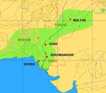 - After pirates plunder an Arab ship near the mouth of the Indus River (Pakistan), Umayyad Arabs under Muhammad ibn Qasim invade India with 10,000 men and 6,000 horses, establishing a sultanate in Sindh. Qasim sends expeditions to Surashtra, where he makes peaceful treaty settlements with the Rashtrakuta.[1]