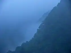 Agumbe hosts India's first automatic weather station, founded by Romulus Whitaker b. 1943, New York, NY.[17] Agumbe lies in a rainforest region with a tropical climate, warm and humid. Under the Köppen system of climate classification Agumbe is an 'Am' climate, that is, a tropical monsoon climate.[18] A dense silvery fog forms over the Western Ghats at Agumbe.[19]