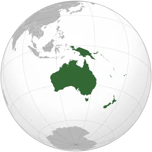 The border between Asia and Oceania is usually placed somewhere in the Indonesian Archipelago, specifically in Eastern Indonesia. The Wallace Line separates the Asian and Wallacea biogeographical realms, a transition zone of deep water straits between the Asian and Australian continental shelves. Weber's Line split the region in two with regard to the balance of fauna between Asian origin or Australo-Papuan origin.[38] Wallacea's eastern boundary with Sahul is represented by the Lydekker's Line.[39][40] The Maluku Islands (except the Aru Islands) are often considered to lie on the border of southeast Asia, with the Aru Islands and Western New Guinea, to the east of the Lydekker's Line, being wholly part of Oceania, as both lie on the Australian continental plate.[38] Culturally, the Wallacea region denoted the transition between Austronesian and Melanesian people, with varying degrees of intermixing between the two. In general, the further west and coastal a region is, the stronger the Austronesian influences, and the further east and inland a region is, the stronger the Melanesian influences.[41] The terms Southeast Asia and Oceania, devised in the 19th century, have had several vastly different geographic meanings since their inception. The chief factor in determining which islands of the Indonesian Archipelago are Asian has been the location of the colonial possessions of the various empires there (not all European). Lewis and Wigen assert, "The narrowing of 'Southeast Asia' to its present boundaries was thus a gradual process."[42]