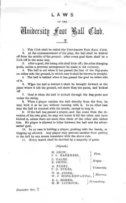 The "Laws of the University Foot Ball Club" (Cambridge Rules) of 1856