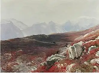 From 1852 to 1856, he studied at the Academy of Fine Arts with the landscape painter, Franz Steinfeld.[2] After graduating, he undertook numerous study trips throughout southern and western Europe, notably to the North Sea, Hungary and the Alps. From 1871 to 1874, he was a secretary at the Academy's library, then served as Curator of their gallery from 1874 to 1880.[1]