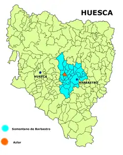 Azlor is a municipality located in the province of Huesca, Aragon, Spain. As of 2018, the municipality has a population of 153 inhabitants.