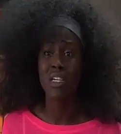 Blessing also plays a role in the domestic abuse storyline of Maxine Minniver (Nikki Sanderson).[23] In the storyline, Blessing and Dennis help their friend Maxine travel to the airport to escape her abusive fiancé Patrick Blake (Jeremy Sheffield) on the eve of their wedding.[23][24] Maxine shares an "emotional goodbye" with Blessing at the airport, but the "unmissable episodes" result in Maxine eventually not leaving.[23] Blessing was then used to tackle the issue of self-harm, which scriptwriter Larkin had previously told Digital Spy earlier in 2014.[4][25] Ahead of her operation, Blessing tries to track down her parents, but she cuts herself after this leads to "disappointment".[25] Blessing covers her wounds when she meets with her consultant regarding the surgery and she is delighted when Dennis throws her a party to celebrate.[25] However, at the party Dennis notices Blessing's unusual behaviour and she later collapses.[25]