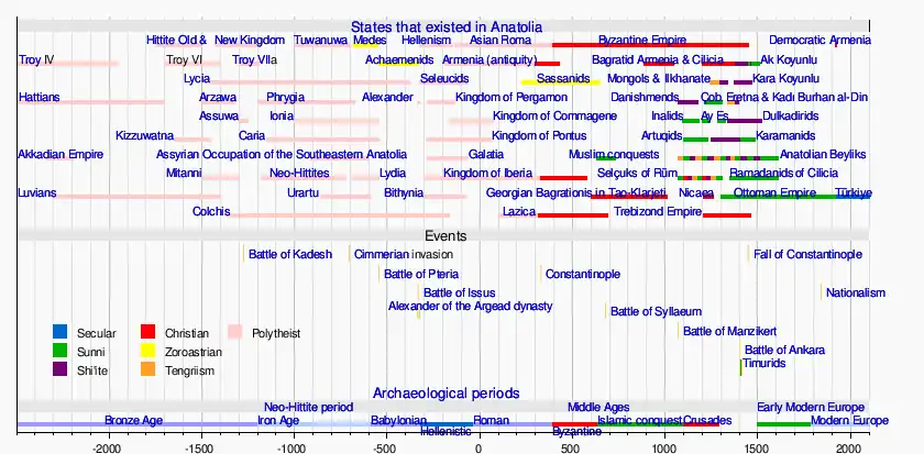 Given the significant overlap in historiographical periodisations of "Late Roman history", "late antiquity", and "Byzantine history", there is no consensus on a foundation date for the Byzantine Empire. Scholarship with links to Greece or Eastern Orthodoxy has customarily placed it in the early 300s.[14] The growth of the study of "late antiquity" has led to some historians setting a start date in the seventh or eighth centuries.[15] Others believe a "new empire" began during changes c. 300 AD.[16] Geoffrey Greatrex believes that it is impossible to precisely date the foundation of the Byzantine Empire.[17]