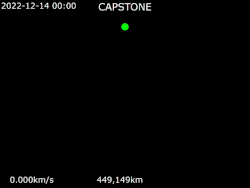 CAPSTONE (Cislunar Autonomous Positioning System Technology Operations and Navigation Experiment) is a lunar orbiter that is testing and verifying the calculated orbital stability planned for the Lunar Gateway space station. The spacecraft is a 12-unit CubeSat that is also testing a navigation system that is measuring its position relative to NASA's Lunar Reconnaissance Orbiter (LRO) without relying on ground stations. It was launched on 28 June 2022, arrived in lunar orbit on 14 November 2022, and was scheduled to orbit for six months. On 18 May 2023, it completed its primary mission to orbit in the near-rectilinear halo orbit for six months, but will stay on this orbit, continuing to perform experiments during an enhanced mission phase.[5]