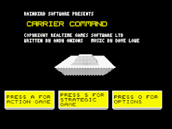 Carrier Command is a 1988 video game published by Rainbird for the Amiga, Atari ST, IBM PC compatibles, ZX Spectrum, Macintosh, Commodore 64, and Amstrad CPC. Carrier Command is a cross between a vehicle simulation game and a real-time strategy game where players control a robotic aircraft carrier.