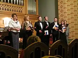 In 1944, the Bukovina Song and Dance Ensemble of Ukraine was founded. The Chamber Orchestra performs since 1975, and in 1978, it won the Republican competition of chamber music ensembles in Kiev. In 1992 was founded the Chernivtsi Philharmonic Symphony Orchestra, in 1993 - the Chamber Choir. The philharmonic hall became the starting point of such performers as Jan Tabachnik, Sofia Rotaru and Sophia Agranovich.[1][2]