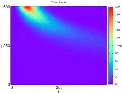 A practical implementation is the combination of neurons over a lattice, for that, it can be defined as a coupling constant for combining the neurons. For neurons in a single row, we can define the evolution of action potential on time by the diffusion of the local temperature in: