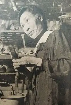 Kuroda was appointed an assistant professor at Tohoku Imperial University upon graduating in 1916 and became a professor at Tokyo Women's Higher Normal School in 1918. The same year, she became the first woman to give a presentation to the Chemical Society of Japan when she presented her research on the pigment of L. erythrorhizon.[5] She travelled to the University of Oxford in 1921, where she researched phthalonic acid derivatives under William Henry Perkin. She returned to Japan in 1923 and resumed her role as professor at Tokyo Women's Higher Normal School. In 1924, she was commissioned by the RIKEN institute to research the structure of carthamin, the pigment of safflower plants. Her thesis on the subject, "The Constitution of Carthamin", earned her a doctorate in science in 1929.[4][6] She was the second woman in Japan to receive such a degree, after Kono Yasui.[7]