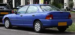 The Neon nameplate first appeared as an environmentally-friendly concept car in 1991 at the Frankfurt Motor Show under the Dodge brand.[4] It was radically styled and not production-ready, but some design elements resembled the future production vehicle.[5][6] The concept car incorporated unique features that included four power sliding doors opening from the center with no B-pillar, a power-operated full-length fabric sunroof with a drop-down rear window, a trash compactor to help eliminate litter, and the car was powered by a two-stroke, three-cylinder, 1.1 L engine rated at 100 hp (75 kW) supplied by Mercury Marine.[7]