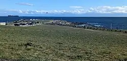 Since the 1970s, an underground sewage pumping centre has existed at Clover Point.[9] In 2016, heavy rainfall caused the station's equipment to fail and release accidental discharge.[10] That same year, Clover Point was rejected as a location for an additional plant.[11] Before 2020, the station only screened sewage before dumping the untreated wastewater directly into the Strait of Juan de Fuca.[12] Mr. Floatie, a 2.1 metres (7 ft) environmental awareness mascot depicting fecal matter, was retired once sewage treatment was implemented.[13] A regional wastewater treatment plant opened at McLoughlin Point in December 2020 as part of a federal mandate;[14] the dispersal of untreated sewage had soured relations between British Columbia and neighboring Washington in the United States.[15]