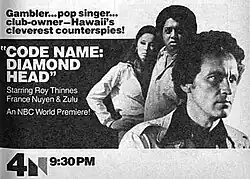 Code Name: Diamond Head is a 1977 American television spy film starring Roy Thinnes[1] as an undercover counterintelligence officer Johnny Paul known as Diamond Head whose mission is to stop a rogue double agent Sean Donovan from stealing the formula for a new chemical weapon.[2] Originally filmed as a pilot for a new television drama (which was never picked up by the networks), it was eventually used for The NBC Monday Movie on U.S. broadcast network NBC. [3][4]