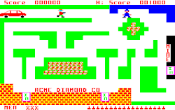 There are many diamonds to collect which are on many levels of the Acme Diamond Company building as well as the mine. Police enter the building but not the mine where the only enemies are ghosts. The player may also enter the police station (on some versions) and free fellow robbers.