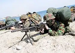 The Daewoo Precision Industries K3 is a South Korean light machine-gun. It is the third indigenous firearm developed in South Korea by the Agency for Defense Development, following the K1 and K2 assault rifles. It is manufactured by Daewoo Precision Industries, current SNT Motiv.[1] The K3 is capable of firing both 5.56×45mm NATO and .223 Remington rounds like the K2 assault rifle. The K3 light machine gun entered service in 1989, replacing the M60 machine gun in frontline use.[2]