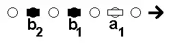 It is often useful to have an idea of the probability that a given piece can be removed in the next round. Suppose player A has a piece a1, and player B has a piece b1 a few positions behind a1 with no other pieces in between. If it is B's turn, B's chances of being able to remove a1 using b1 in this turn depends on how many positions b1 is behind a1: