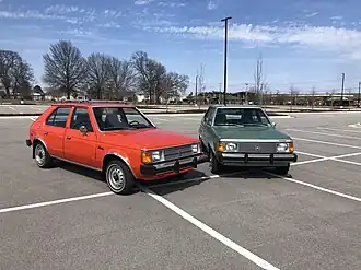 The Dodge Omni is a subcompact car that was manufactured by Chrysler Corporation from the 1978 to 1990 model years.[3] Marketed alongside the Plymouth Horizon, the Omni was the first front-wheel drive Chrysler vehicle; the pair were the first front-wheel-drive economy cars assembled in the United States.[4]
