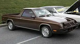The Dodge Rampage was a subcompact unibody[1] coupe utility based on Chrysler's L platform and manufactured and marketed from 1982 to 1984 model years. Plymouth marketed a rebadged variant for model year 1983, as the Scamp.