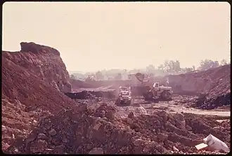 Since 1995, the Appalachian region has produced about half of the United States' coal.[8] Although Appalachia has played a large role in contributing to the coal supply of the United States, the communities surrounding such mining practices have suffered immensely.[8] Several studies have shown disparities between mining communities and non-mining communities in terms of public health, environmental degradation, pollution, and overall quality of life in Appalachia.[1][9][10][11] Variations of surface coal mining techniques in Appalachia include contour, area, high-wall, auger, and mountaintop removal mining (MTR).[10]