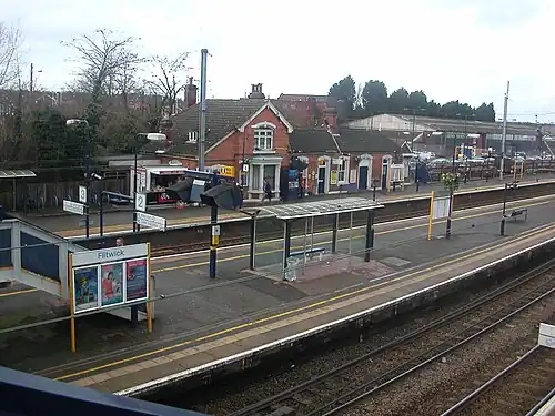 ![]() View across Flitwick station towards the main building on the Down side, 13 January 2007 | |||||