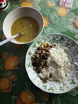 ![]() Biran bhaat & Forashor Dail, a traditional Sylheti breakfast | |