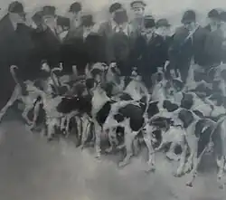 From around 1964, Richter made a number of portraits of dealers, collectors, artists, and others connected with his immediate professional circle. Richter's two portraits of Betty, his daughter, were made in 1977 and 1988 respectively; the three portraits titled IG were made in 1993 and depict the artist's second wife, Isa Genzken. Lesende (1994) portrays Sabine Moritz, whom Richter married in 1995, shown absorbed in the pages of a magazine.[23] Many of his realist paintings reflect on the history of Nazism, creating paintings of family members who had been members, as well as victims, of the Nazi party.[24] From 1966, as well as those given to him by others, Richter began using photographs he had taken as the basis for portraits.[23] In 1975, on the occasion of a show in Düsseldorf, Gilbert & George commissioned Richter to make a portrait of them.[25]