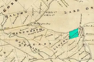 - ^ Cf. detailed 1876 map of Grantham Township, Illustrated Historical Atlas of the counties of Lincoln and Welland, Ont. (Toronto : H.R. Page & Co., 1876).