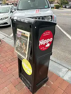 Newspaper vending machine for the Hippo Press located in Concord, New Hampshire