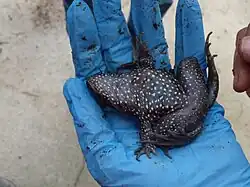 - ^ a b c IUCN SSC Amphibian Specialist Group (2021). "Latonia nigriventer". IUCN Red List of Threatened Species. 2021: e.T6715A177694004. doi:10.2305/IUCN.UK.2021-3.RLTS.T6715A177694004.en. Retrieved 24 May 2023.