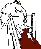 The use of a sharpened blade for the slaughtering of livestock has been practised throughout history. Prior to the development of electric stunning equipment, some species were killed by simply striking them with a blunt instrument, sometimes followed by exsanguination with a knife.[6]